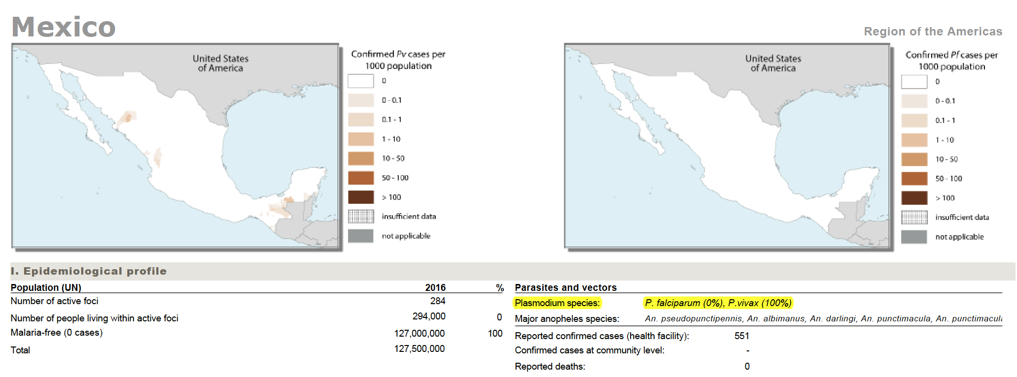 - Carte OMS du risque de paludisme au Mexique - 02/01/2018